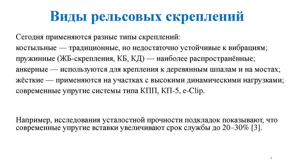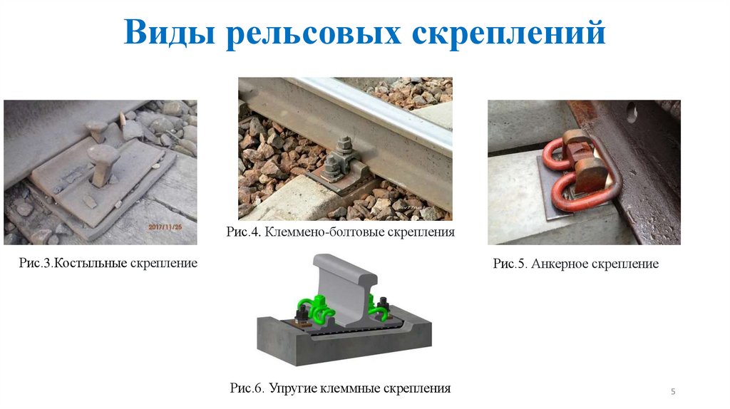 Сегодня применяются разные типы скреплений:костыльные — традиционные, но недостаточно устойчивые к вибрациям;