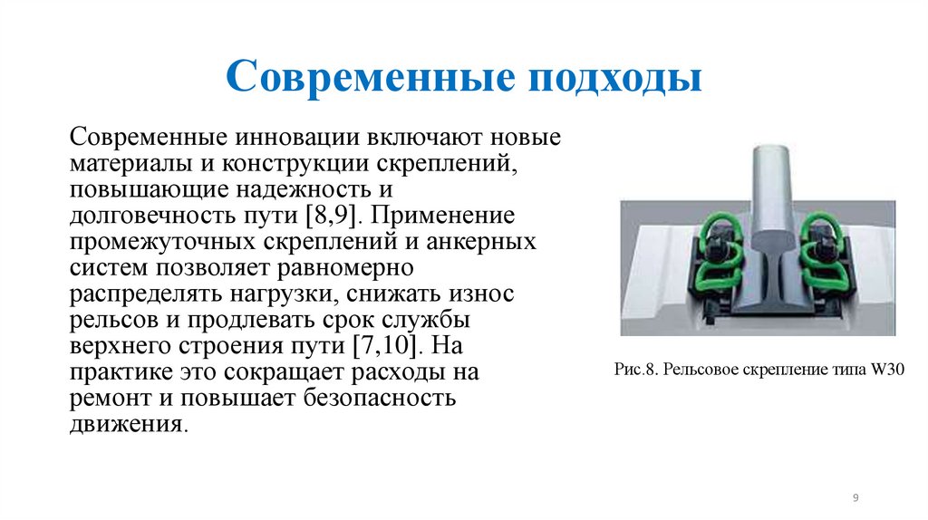 8. Маеров Г. Р., Матюшкова Л. И. Инновационные конструкции и технологии современных рельсовых скреплений // Наука и