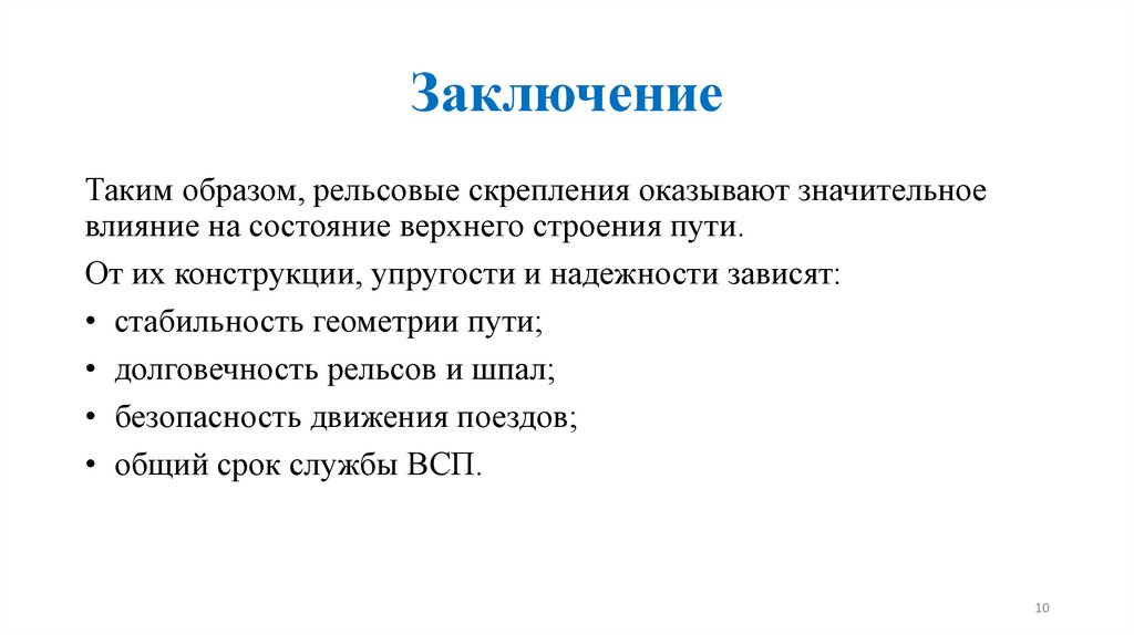 Таким образом, рельсовые скрепления оказывают значительноевлияние на состояние верхнего строения пути.