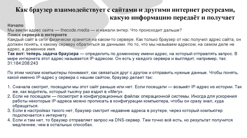 Мы ввели адрес сайта — thecode.media — и нажали энтер. Что происходит дальше?