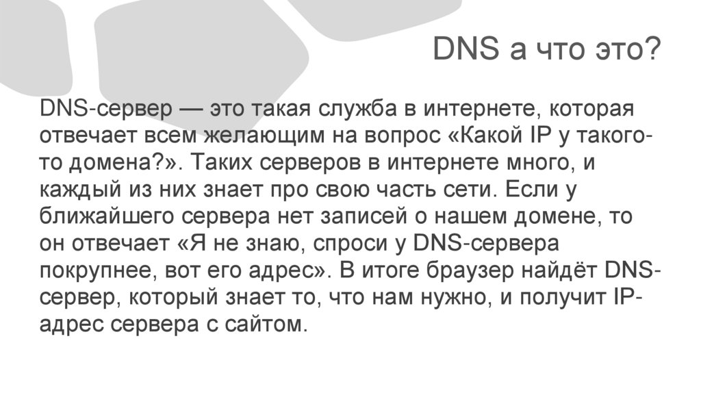 DNS а что это?DNS-сервер — это такая служба в интернете, которая