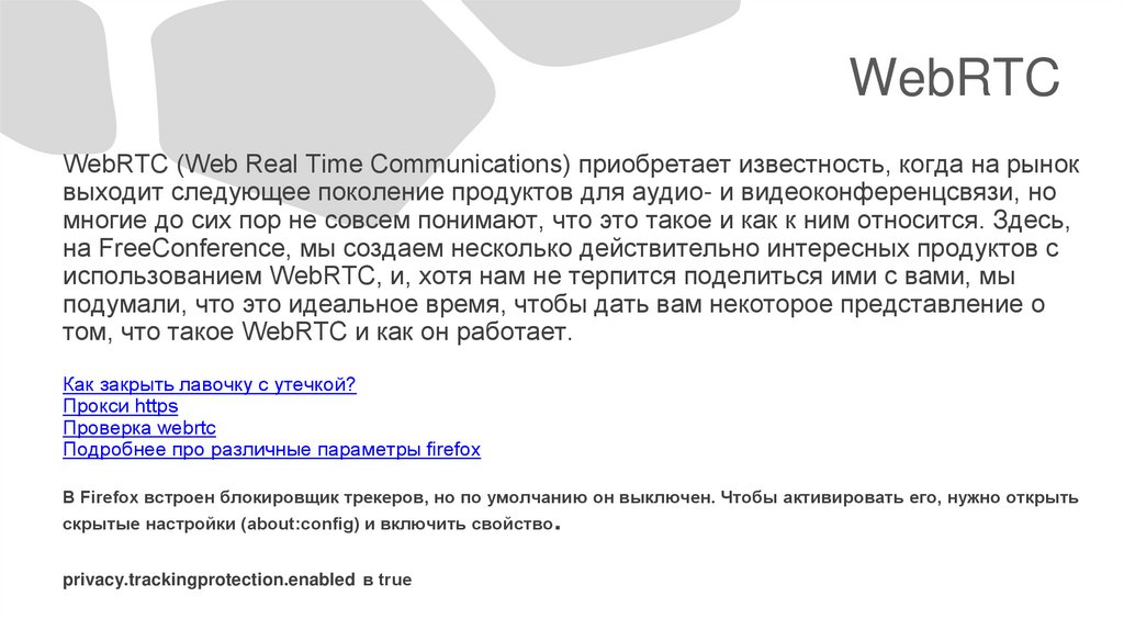 WebRTCWebRTC (Web Real Time Communications) приобретает известность, когда на рынок