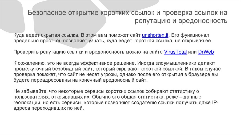 Не забывайте, что некоторые сервисы коротких ссылок собирают статистику о