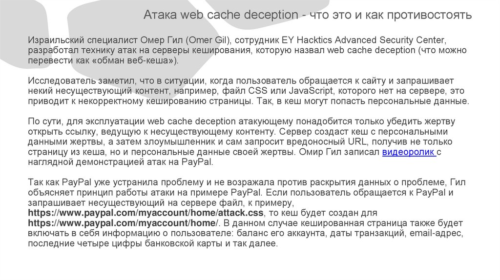 Атака web cache deception - что это и как противостоятьИзраильский специалист Омер Гил (Omer Gil), сотрудник EY Hacktics Advanced Security Center,