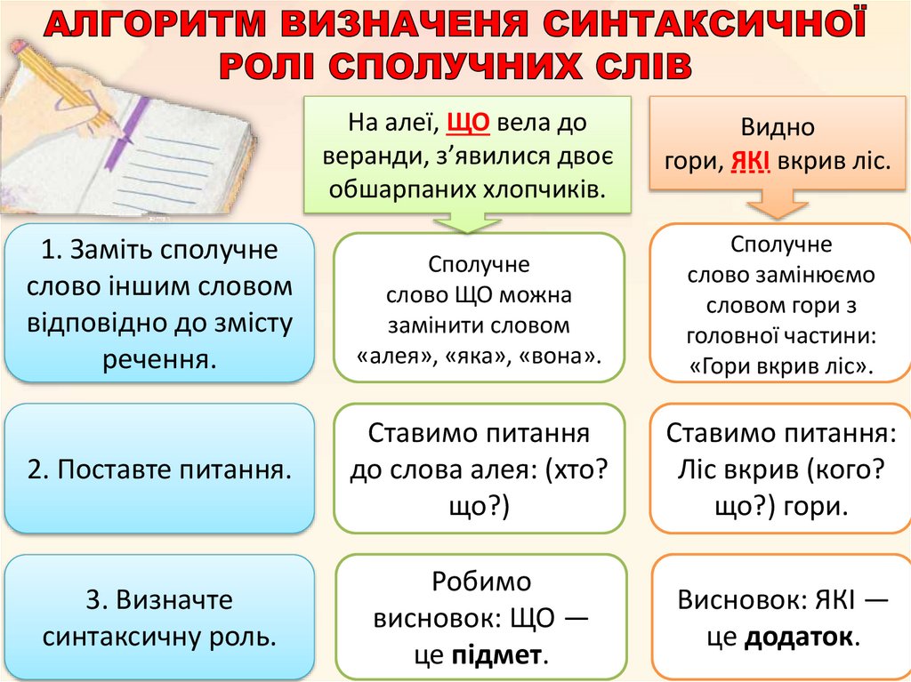 1. ПІДРЯДНІ СПОЛУЧНИКИ Й СПОЛУЧНІ СЛОВА У СКЛАДНОПІДРЯДНИХ РЕЧЕННЯХ