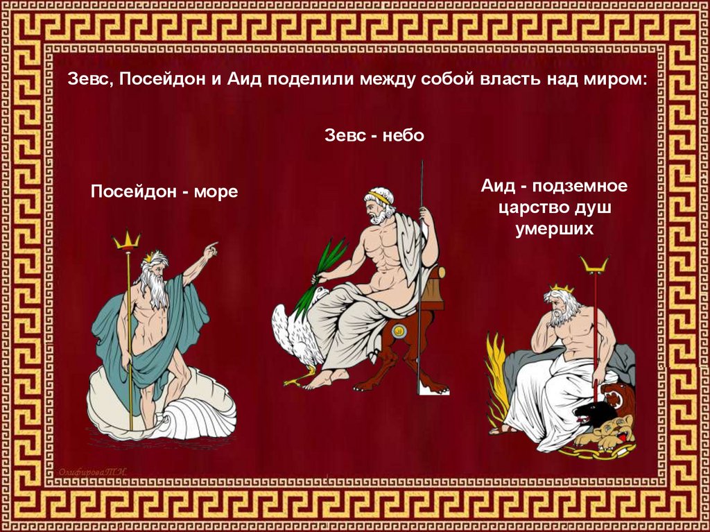Зевс, Посейдон и Аид поделили между собой власть над миром:Зевс - небо
