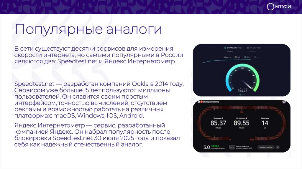 В сети существуют десятки сервисов для измеренияскорости интернета, но самыми популярными в России