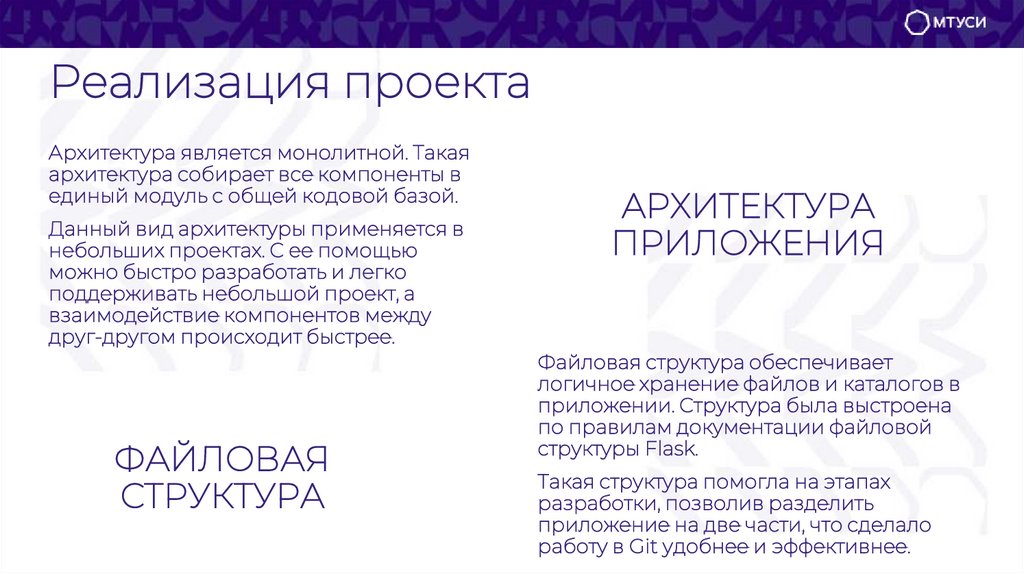 Архитектура является монолитной. Такаяархитектура собирает все компоненты в
