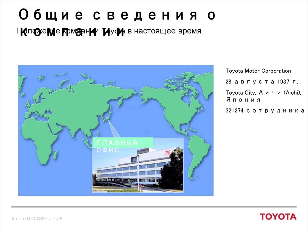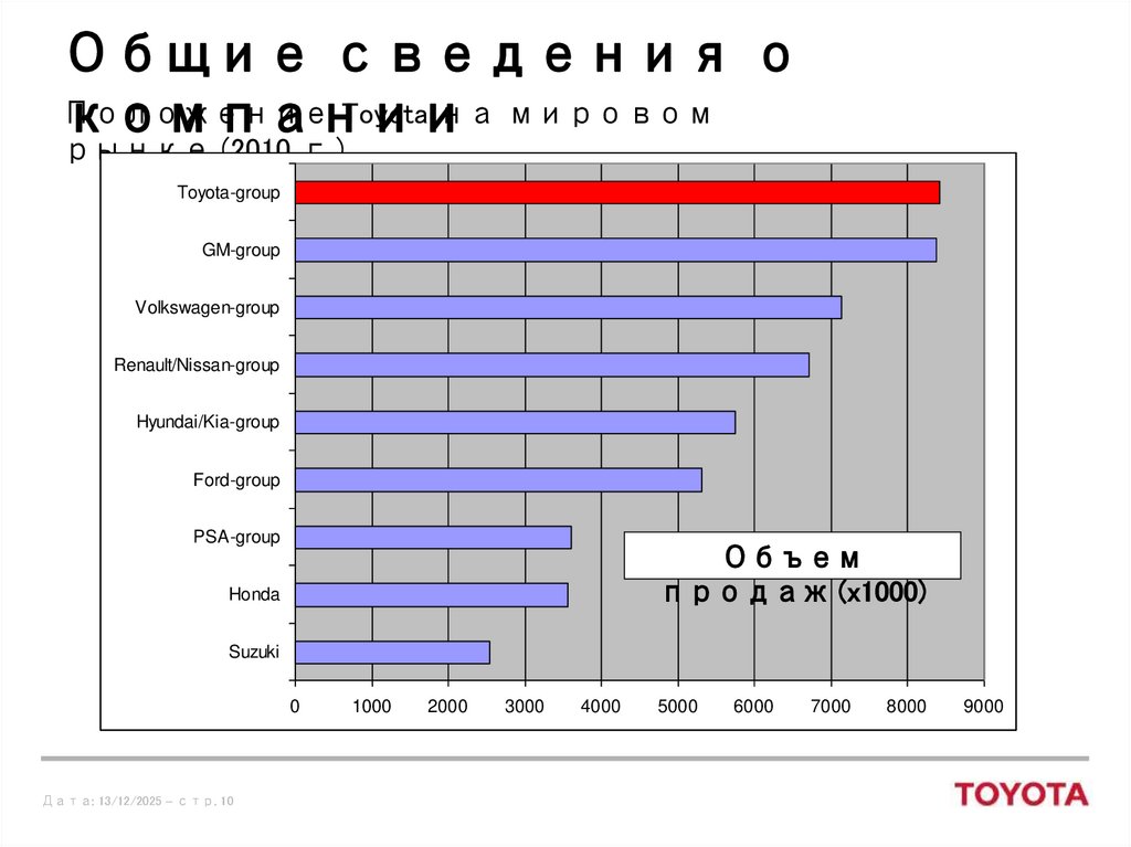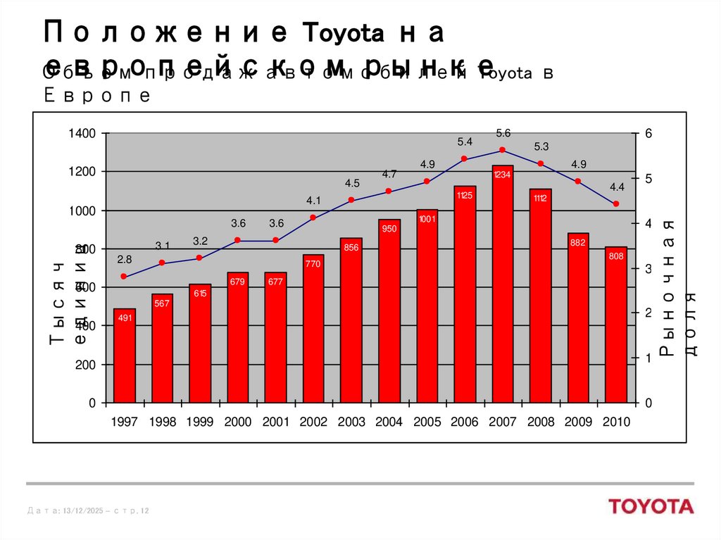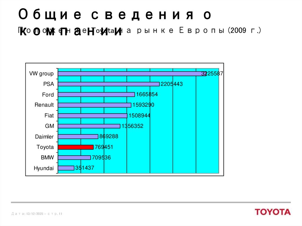 Общие сведения оПоложение Toyota на рынке Европы (2009 г.)