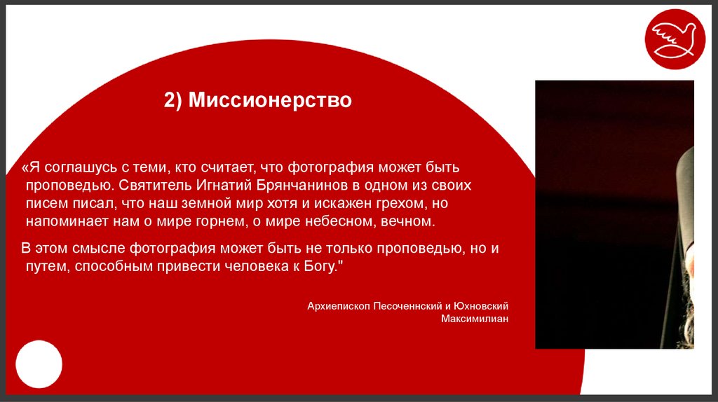 2) Миссионерство«Я соглашусь с теми, кто считает, что фотография может быть