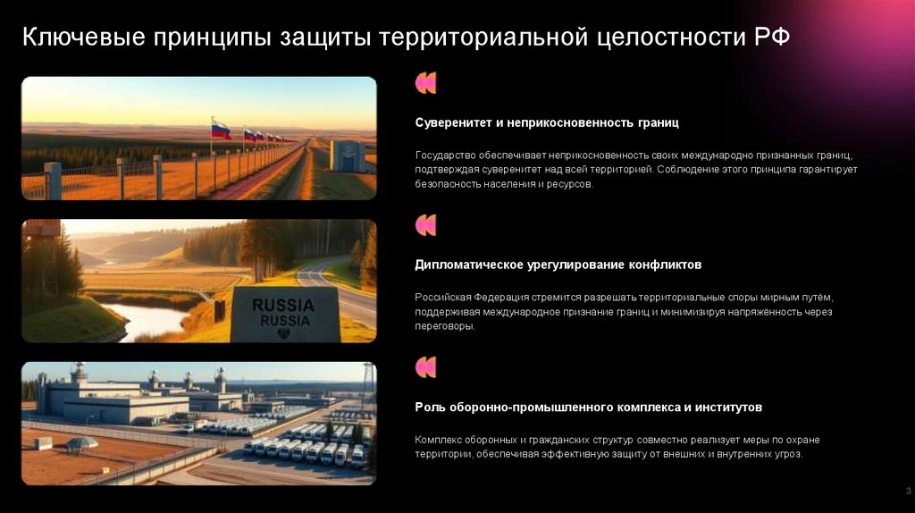 Ключевые принципы защиты территориальной целостности РФСуверенитет и неприкосновенность границ