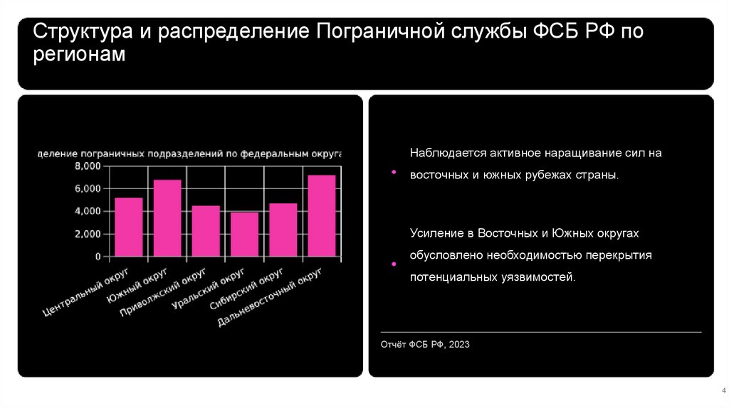 Структура и распределение Пограничной службы ФСБ РФ порегионам