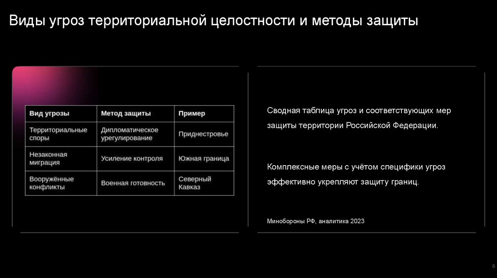 Виды угроз территориальной целостности и методы защитыСводная таблица угроз и соответствующих мер