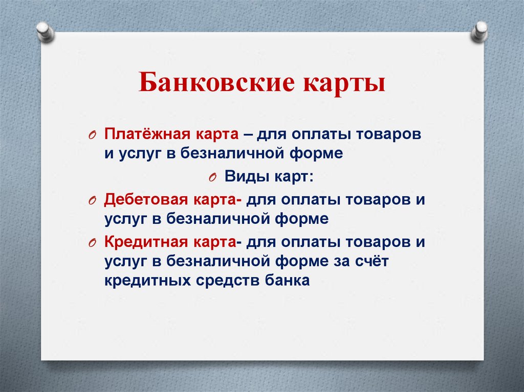 O Платёжная карта – для оплаты товарови услуг в безналичной форме
