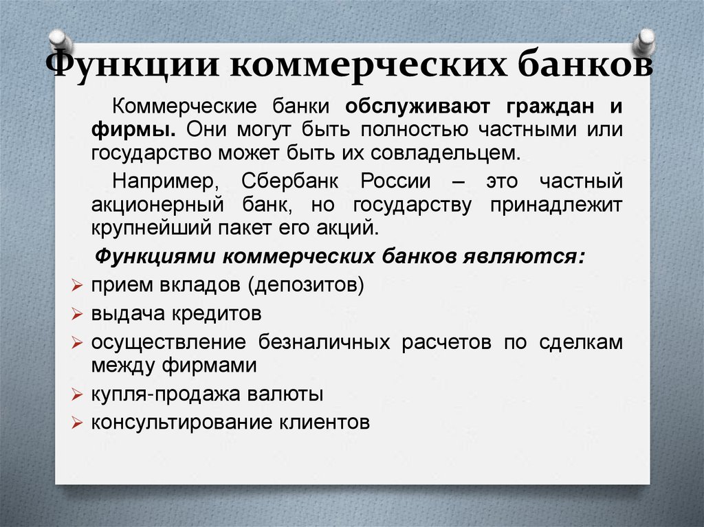 Коммерческие банки обслуживают граждан ифирмы. Они могут быть полностью частными или