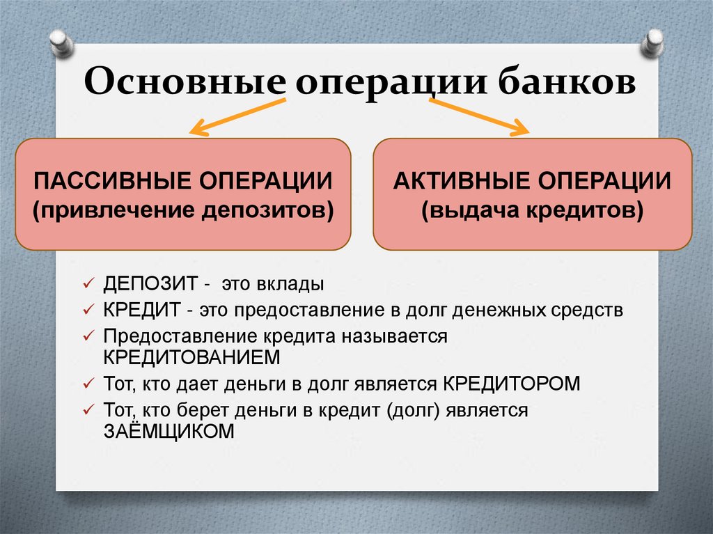 ПАССИВНЫЕ ОПЕРАЦИИ(привлечение депозитов)
