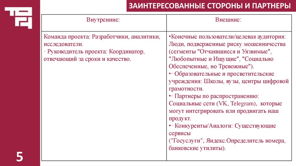•Конечные пользователи/целевая аудитория: