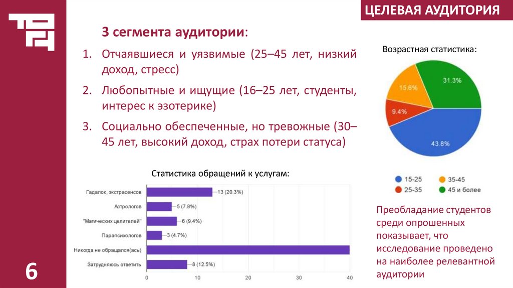 ЦЕЛЕВАЯ АУДИТОРИЯ3 сегмента аудитории: