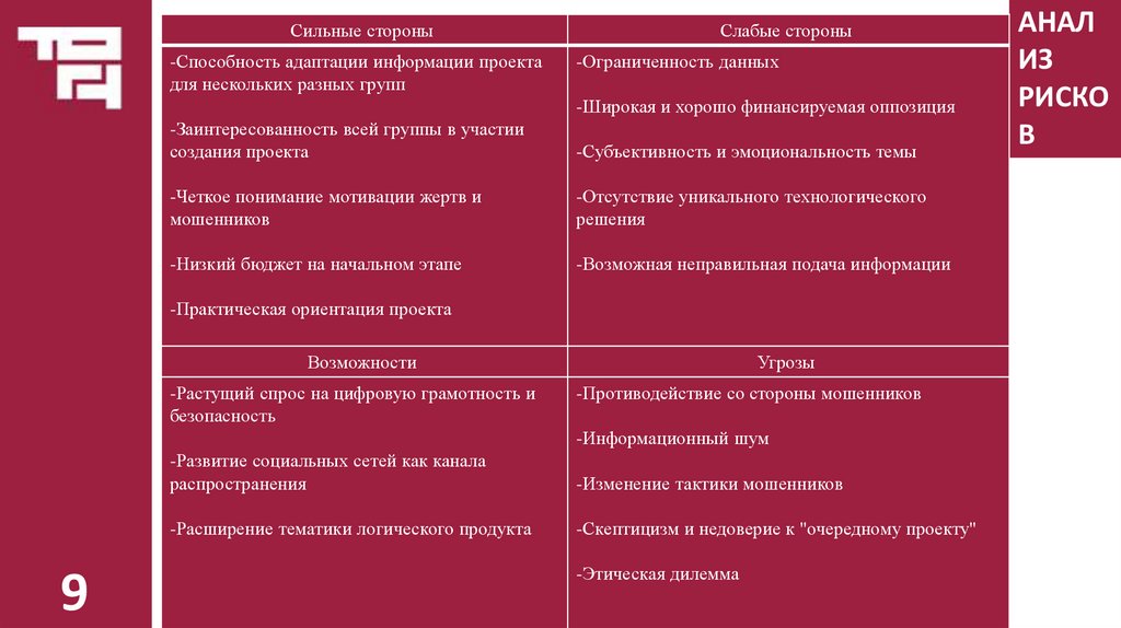 Сильные стороны-Способность адаптации информации проекта
