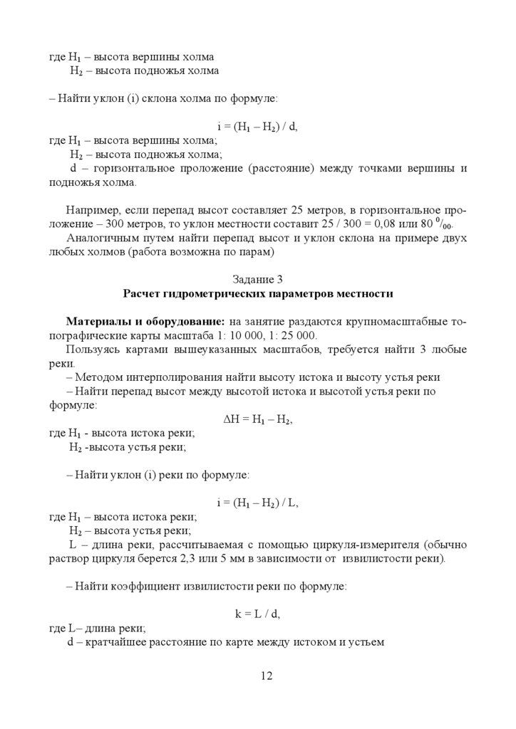 2. Расчет морфометрических и гидрометрических параметров местности по