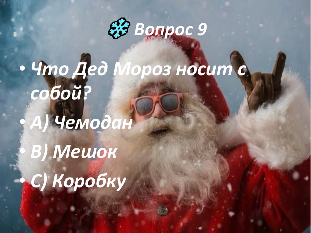 Вопрос 9• Что Дед Мороз носит с