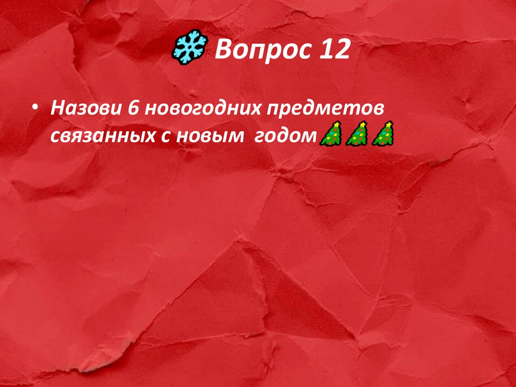 Вопрос 12• Назови 6 новогодних предметов