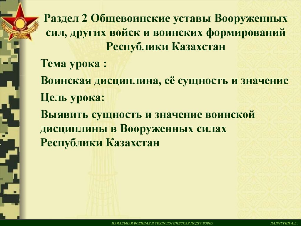 Республики Казахстан «О воинской службе и статусе военнослужащих»