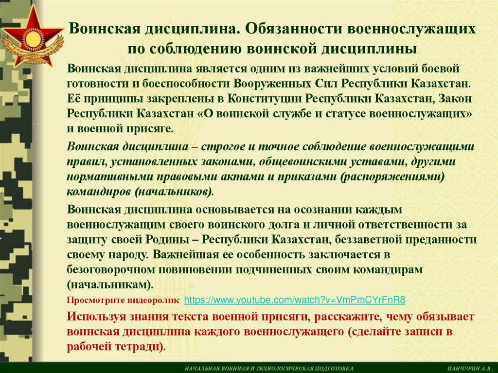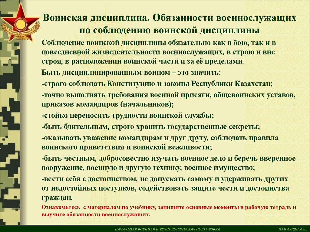 воинская дисциплина каждого военнослужащего (сделайте записи в