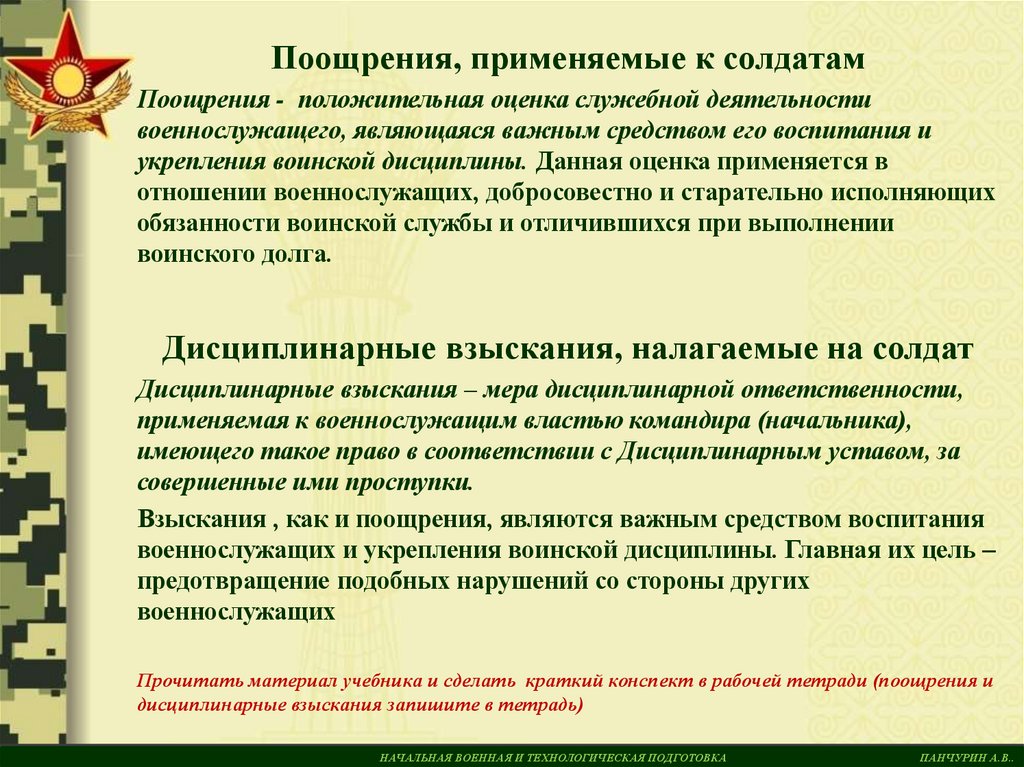 -виды дисциплинарных взысканий, налагаемых на солдат