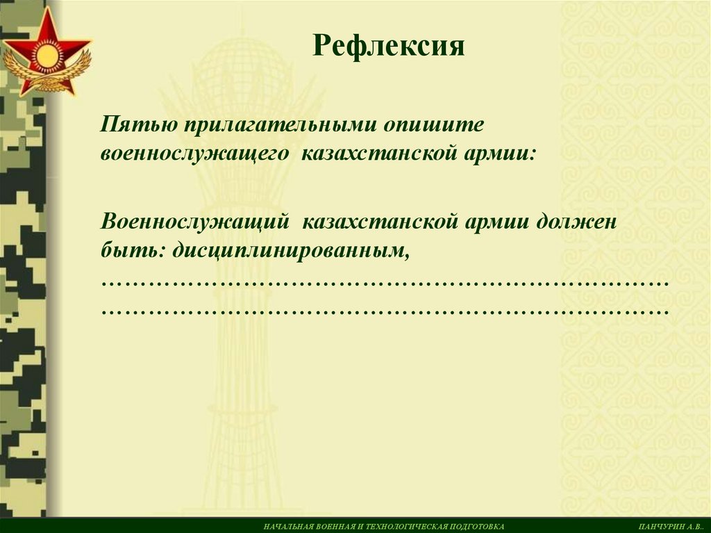 защиту своей Родины – Республики Казахстан, беззаветной преданности
