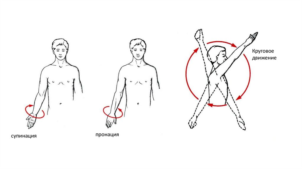 Вертикальная ось – вращение (ротация, супинация, пронация)
