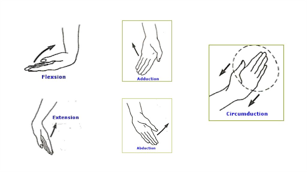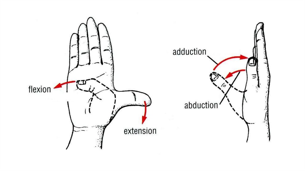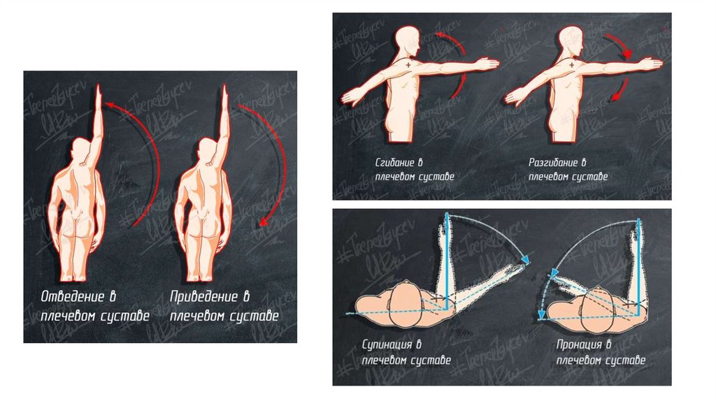 Фронтальная ось – сгибание и разгибаниеСаггитальная ось – приведение и отведение