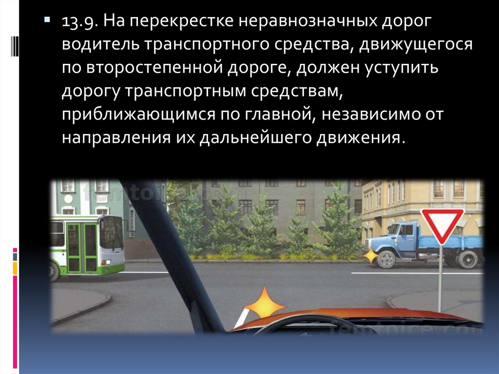 13.9. На перекрестке неравнозначных дорогводитель транспортного средства, движущегося