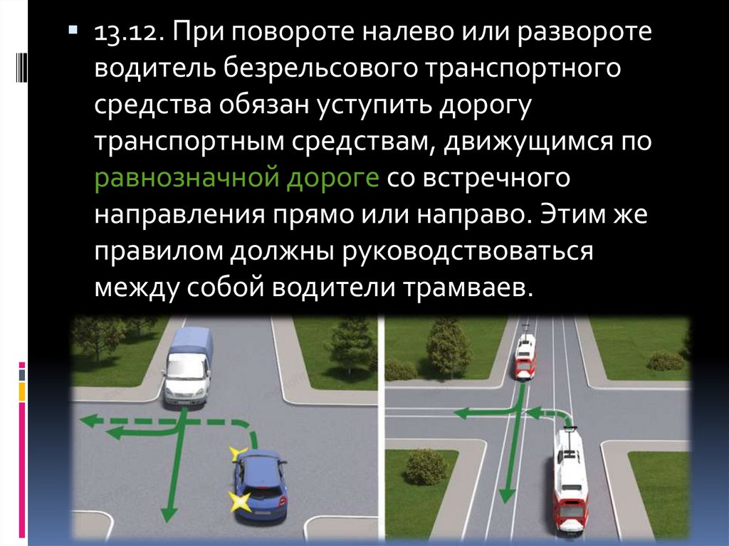 13.12. При повороте налево или разворотеводитель безрельсового транспортного