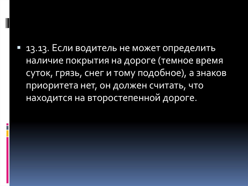 13.13. Если водитель не может определитьналичие покрытия на дороге (темное время