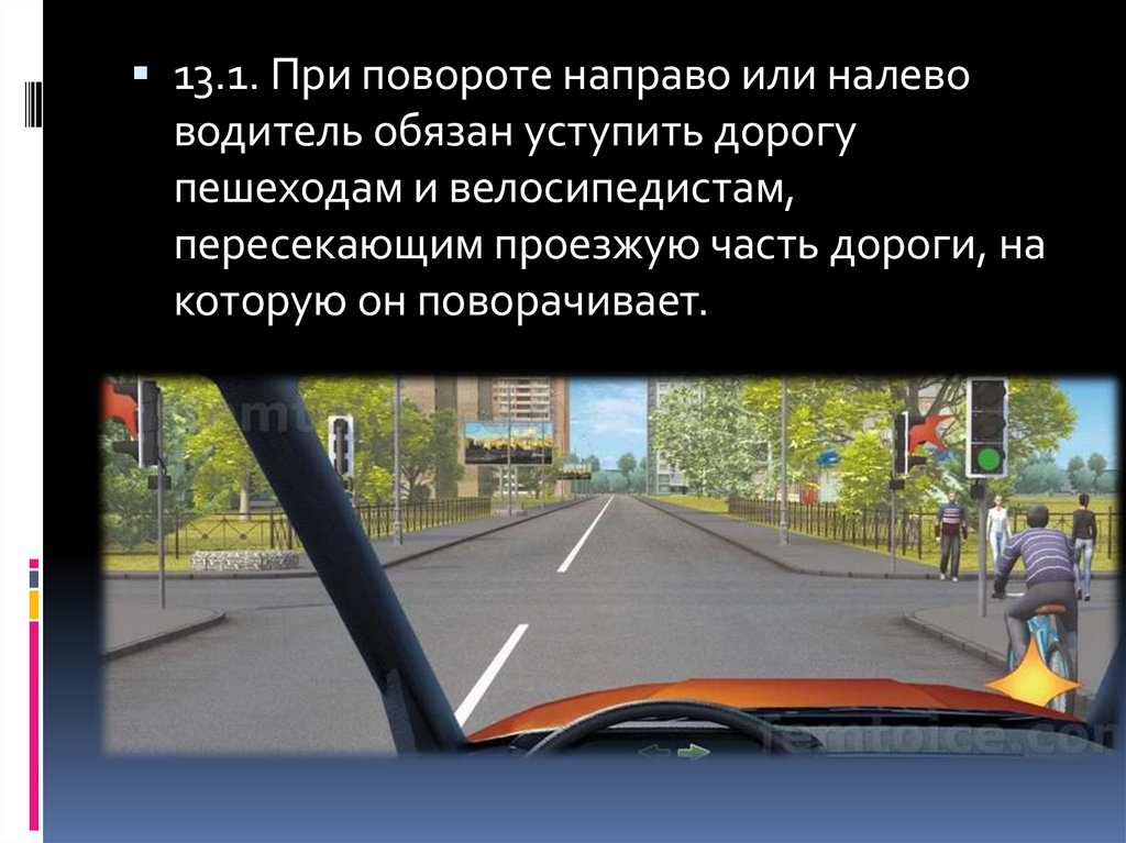 13.1. При повороте направо или налевоводитель обязан уступить дорогу