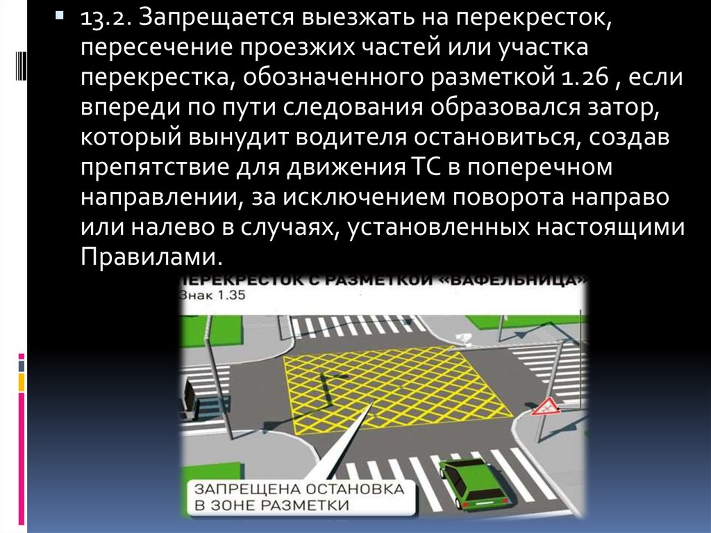 13.2. Запрещается выезжать на перекресток,пересечение проезжих частей или участка