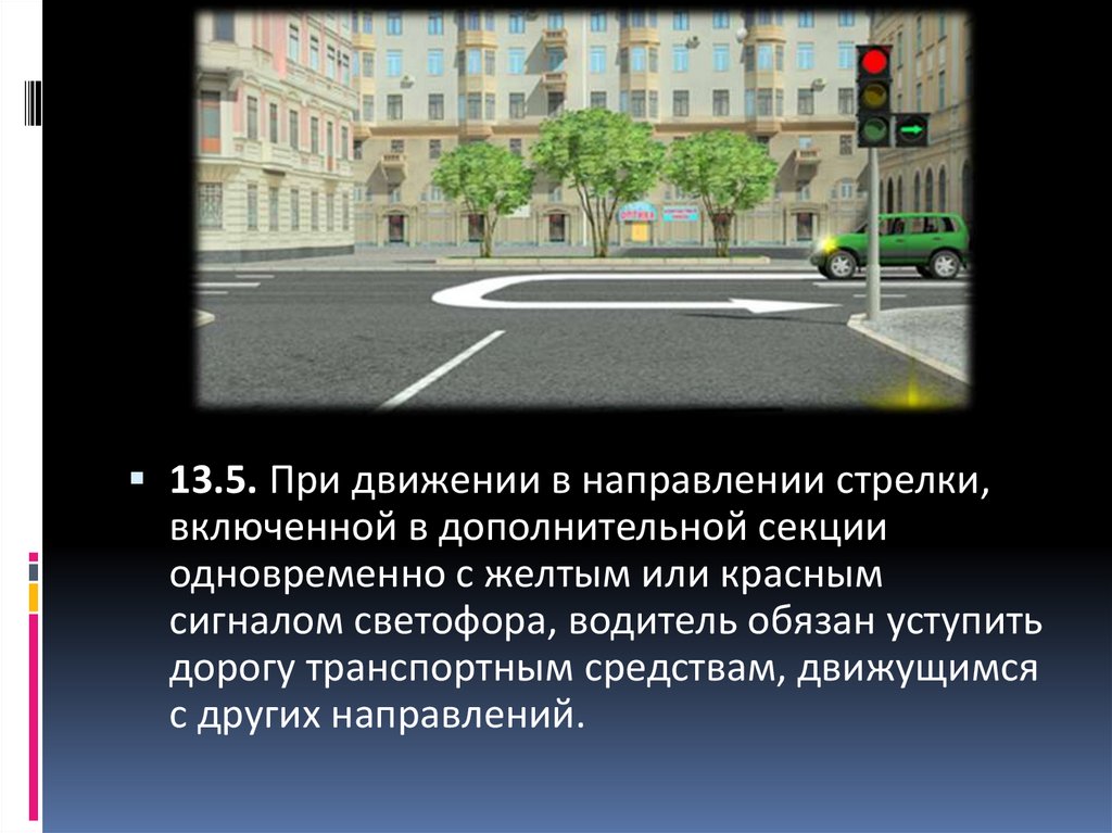 13.5. При движении в направлении стрелки,включенной в дополнительной секции