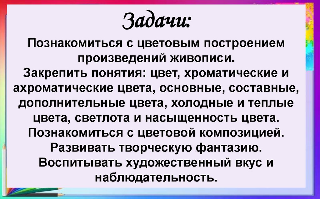 конструировать. Цвет - живописное средство, которое делает этот мир