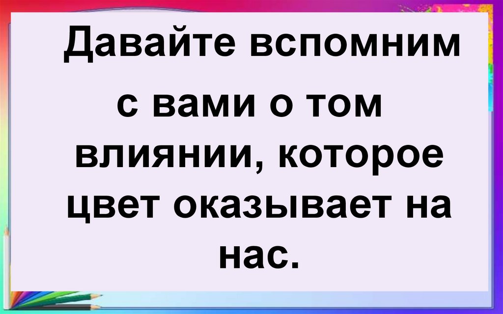 Мир, окружающий нас, удивляет и радует разнообразием цвета. Цветможно по-разному воспринимать, цветом можно мыслить и