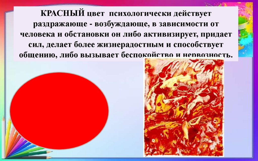 КРАСНЫЙ цвет психологически действуетраздражающе - возбуждающе, в зависимости от