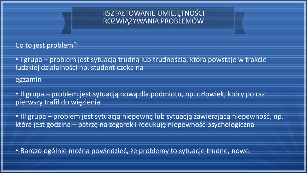 • Bardzo ogólnie można powiedzieć, że problemy to sytuacje trudne, nowe.