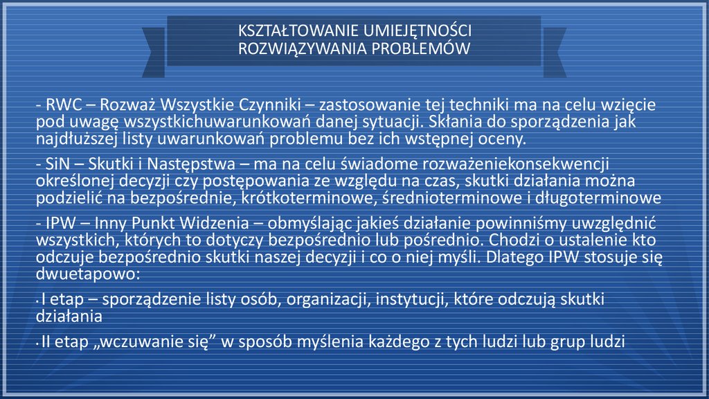 KSZTAŁTOWANIE UMIEJĘTNOŚCIROZWIĄZYWANIA PROBLEMÓW