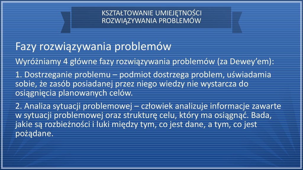 Wyróżniamy 4 główne fazy rozwiązywania problemów (za Dewey’em):