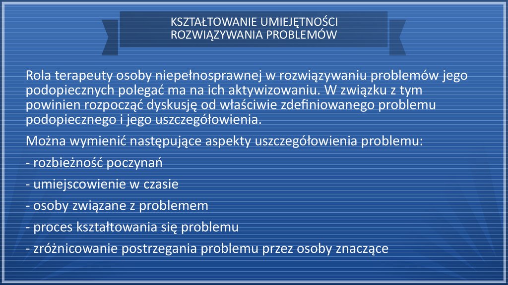 Rola terapeuty osoby niepełnosprawnej w rozwiązywaniu problemów jego