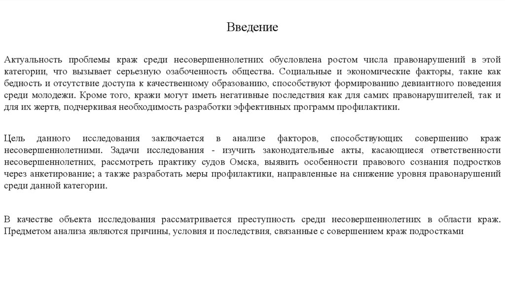 ВведениеАктуальность проблемы краж среди несовершеннолетних обусловлена ростом числа правонарушений в этой