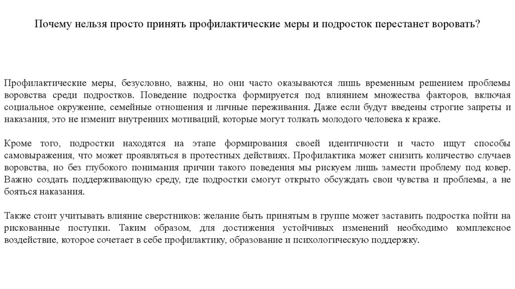 Почему нельзя просто принять профилактические меры и подросток перестанет воровать?Профилактические меры, безусловно, важны, но они часто оказываются лишь временным решением проблемы