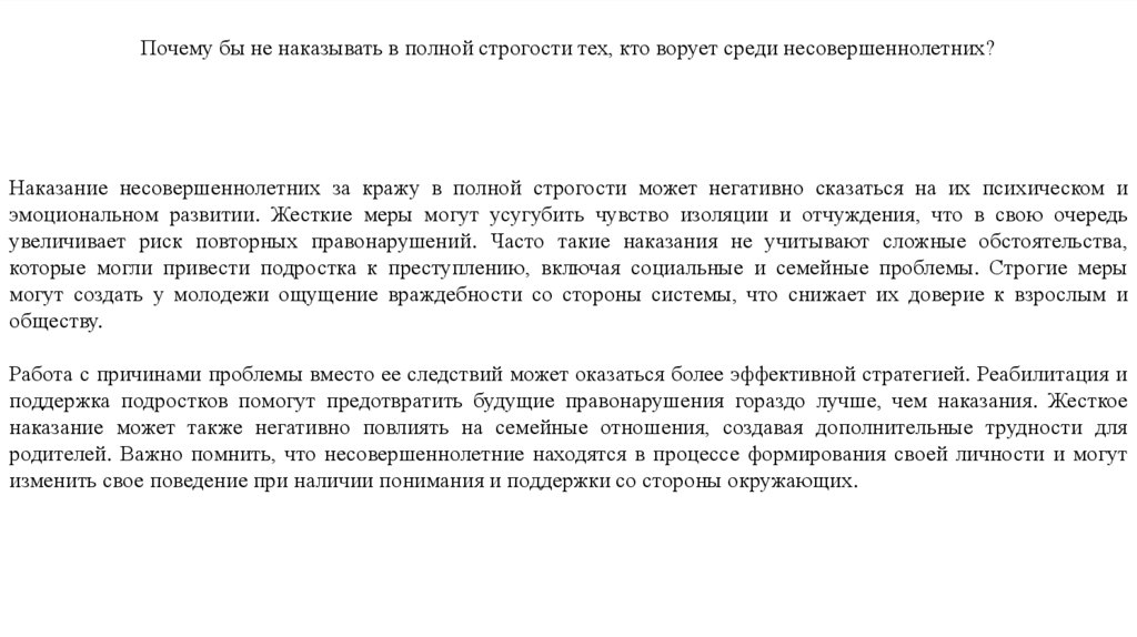 наказания, это не изменит внутренних мотиваций, которые могут толкать молодого человека к краже.