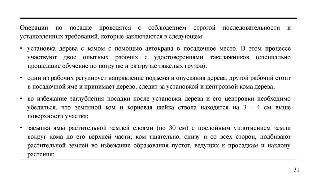 Операции по посадке проводятся с соблюдением строгойустановленных требований, которые заключаются в следующем: