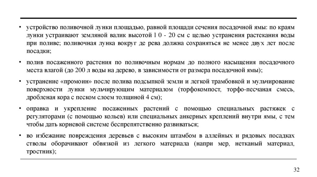 • полив посаженного растения по поливочным нормам до полного насыщения посадочного